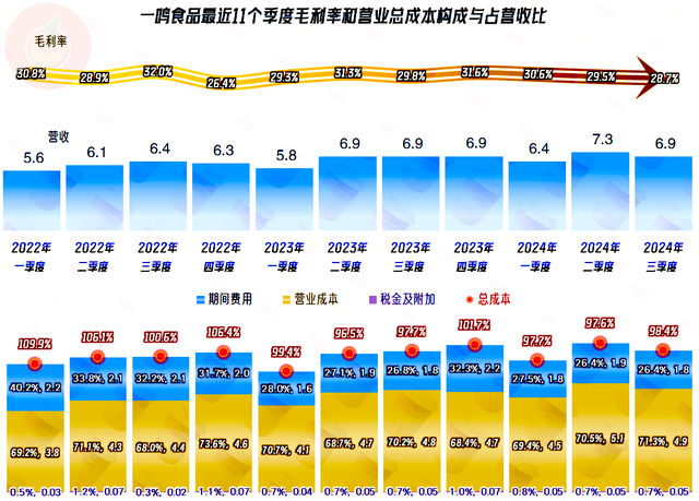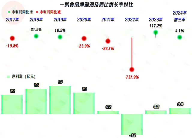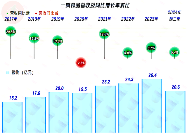 2024年前三季度,一鸣食物的营收同比增长了5.4%,不绝了从2022年驱动的营收增长降速现象。沟通到许多同业齐出现了不同进程的下降,一鸣食物的发扬要算相对好的了。