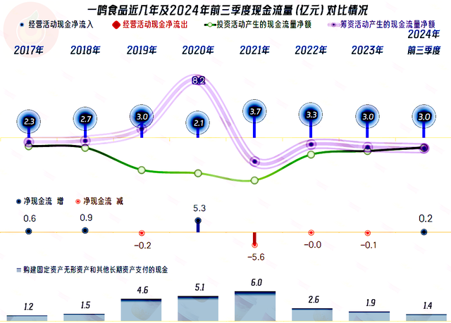 一鸣食物的偿债才略波动很大,主如果短期偿债才略在2021年末短暂大幅下降,集聚迁延增长后,2024年三季度末仍然显得偏低。产生这么的原因主如果一鸣食物的钞票快速变“重”,这和咱们前边看到的集聚三年的大额固定钞票投资关系。