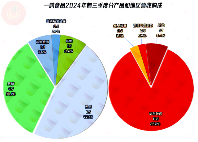 一鸣食物的主要家具是“乳品”,占比接近一半;“烘焙”业务占比三分之一强,还有“连锁策动”非常他一些业务。主要的商场在华东地区,其他地区和线上销售的限制还比较小。